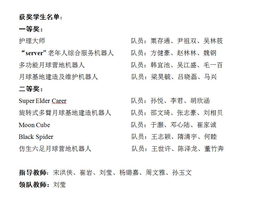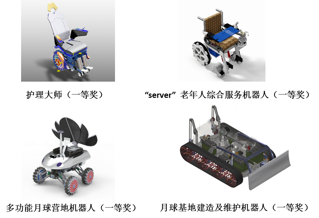 本届大赛以“精心照料体贴入微”为主题,内容包括“康复服务机器人的设计;老年人服务机器人的设计;家用服务机器人的设计;月球营地机器人”。大赛包含预赛、决赛现场答辩和决赛现场设计三个环节,力求全面评价学生的综合素质和水平。决赛现场答辩展示环节,队员们对作品进行了精彩的展示与讲解。决赛现场比赛可携带各种纸质及电子参考资料,但拒绝网络交流。本届现场决赛题目为针对老年人日常生活,在无电梯的老旧居民住宅楼、养老院中解决“上下楼”难题,贴合社会实际,需要参赛学生运用创新设计方法,提出技术解决方案,有相当的难度。最终,我校护理大师团队、“server” 老年人综合服务机器人团队、多功能月球营地机器人团队、月球基地建造及维护机器人团队获得一等奖;Super Elder Carer团队、旋转式多臂月球基地建造机器人团队、Moon Cube团队、Black Spider团队、仿生六足月球营地机器人团队获得二等奖。