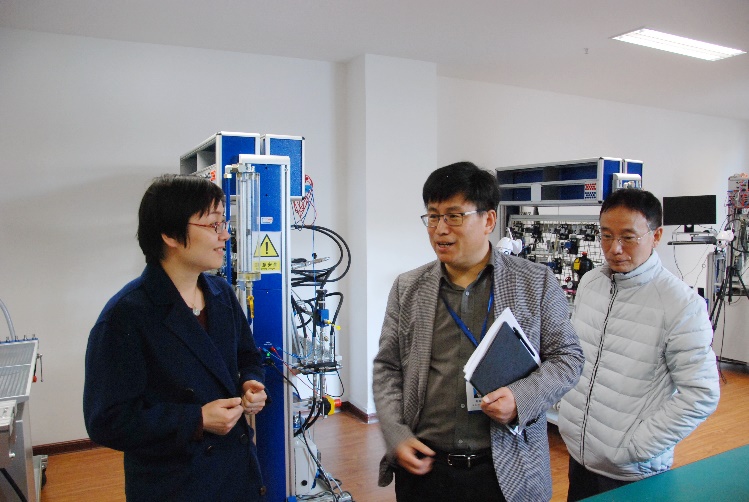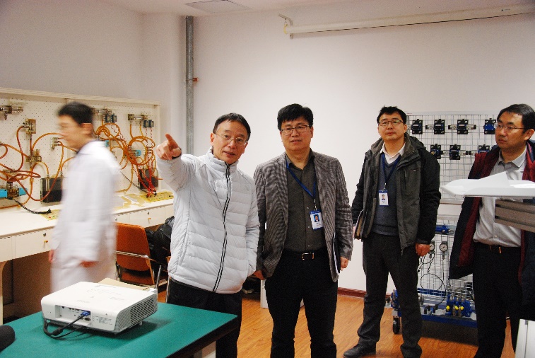 实验中心主任王殿龙教授向刘处长一行介绍了液压实验室的建设和发展情况,尤其对正在论证的实验室建设项目进行了重点讲解。液压实验室目前已建设完成了DS4型液压实验教学设备和远程虚拟教学平台,并在去年新引进了工程机械液压实验台。这些设备和平台目前在国内和国际同类高校达到领先水平。