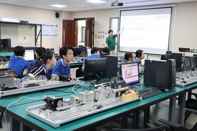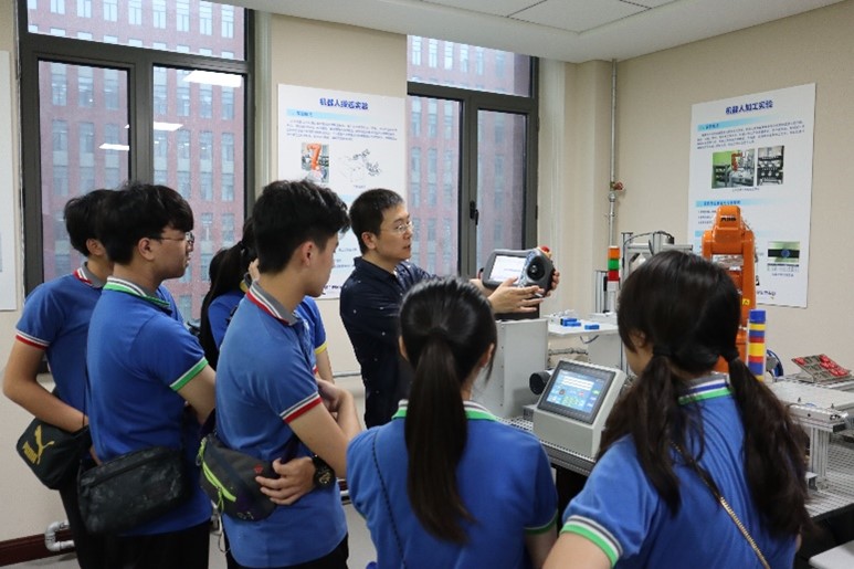 交流团在中心参观和体验了流体传动与液压、控制工程基础、工业机器人、科创竞赛等四个模块,实操了虚实互联的液压实验系统,了解了PID控制器对机械振动系统的影响,对工业机器人进行了编程控制,操作机器人进行循迹及搬运物品动作。通过中心教师的讲解以及亲自动手操作,同学们积极参与科学实践的热情被调动起来,对机械学科有了更深入的认识。