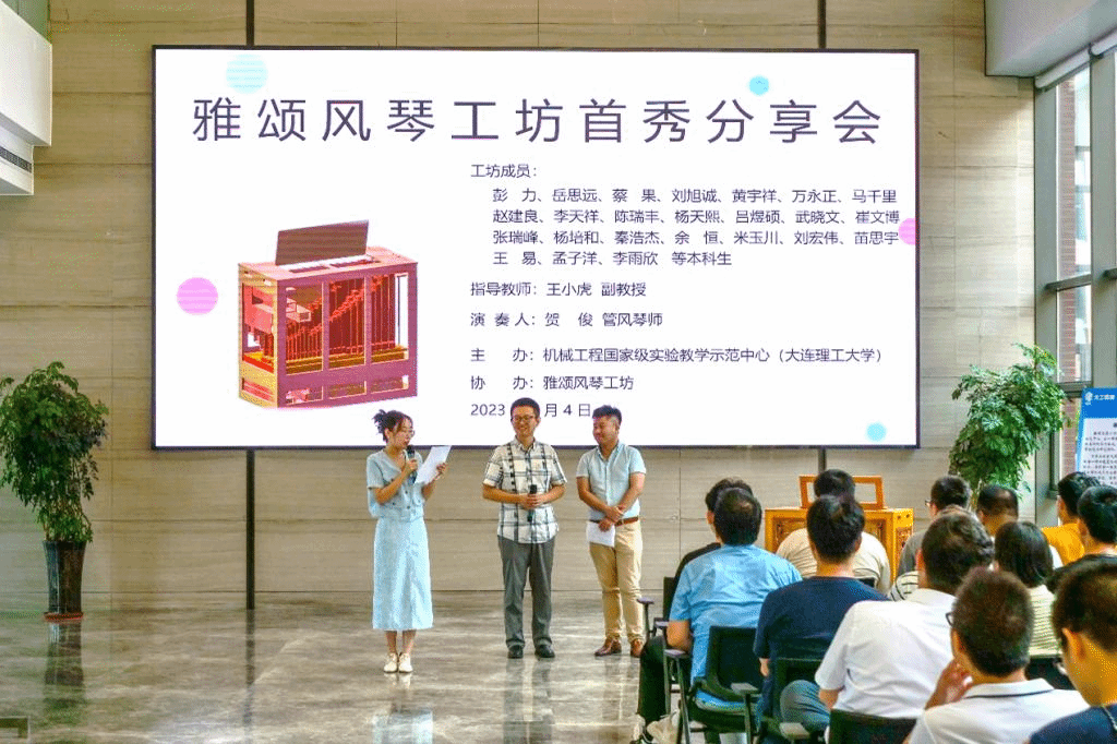 9月4日下午,知方楼一层大厅环绕着时而高亢激昂时而低声呢喃的管风琴声,高低宛转、情绪飞扬,处处充满艺术气息。由机械工程国家级实验教学示范中心(大连理工大学)主办的雅颂风琴工坊首秀分享会在此举行,来自上海的管风琴师贺俊老师专程为中心师生自主设计制造的首架国产管风琴进行讲解与演奏分享,为学院师生带来一场“机械+艺术”的视听盛宴。