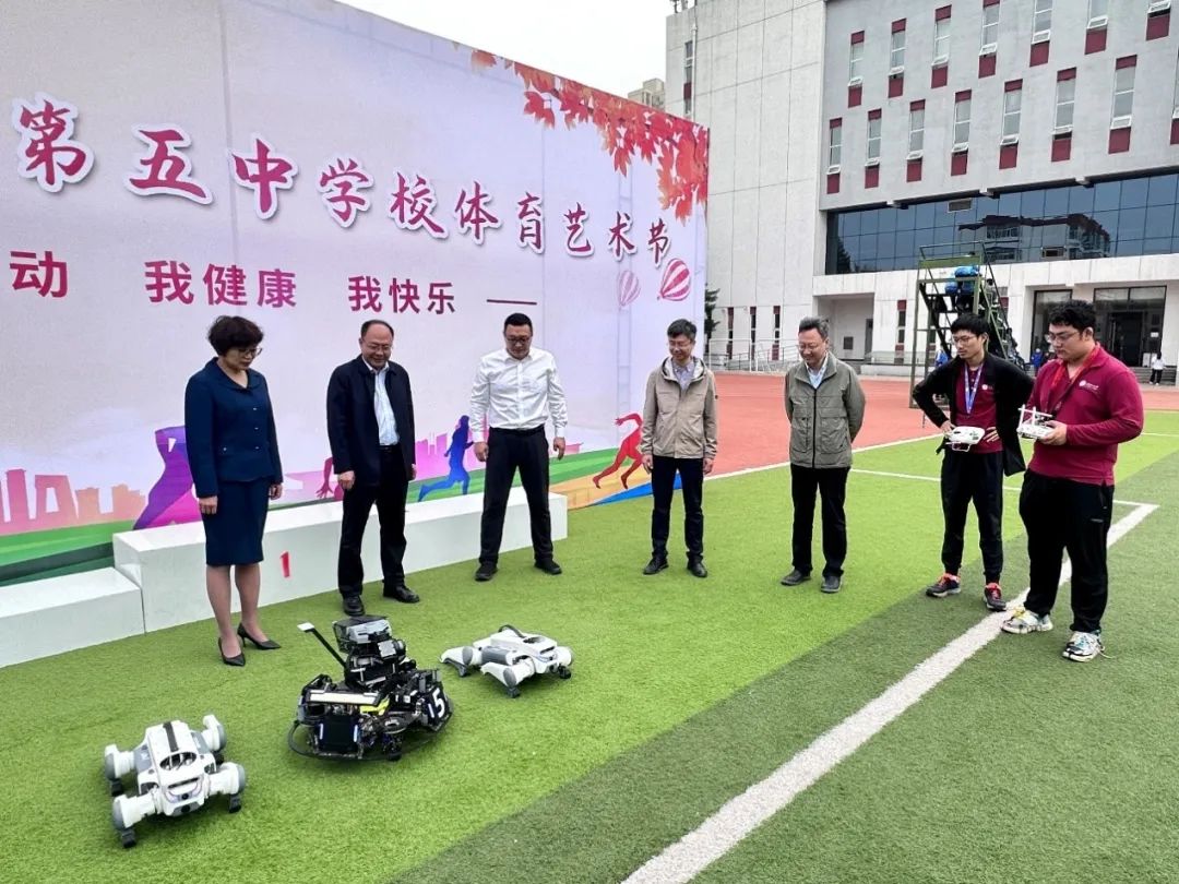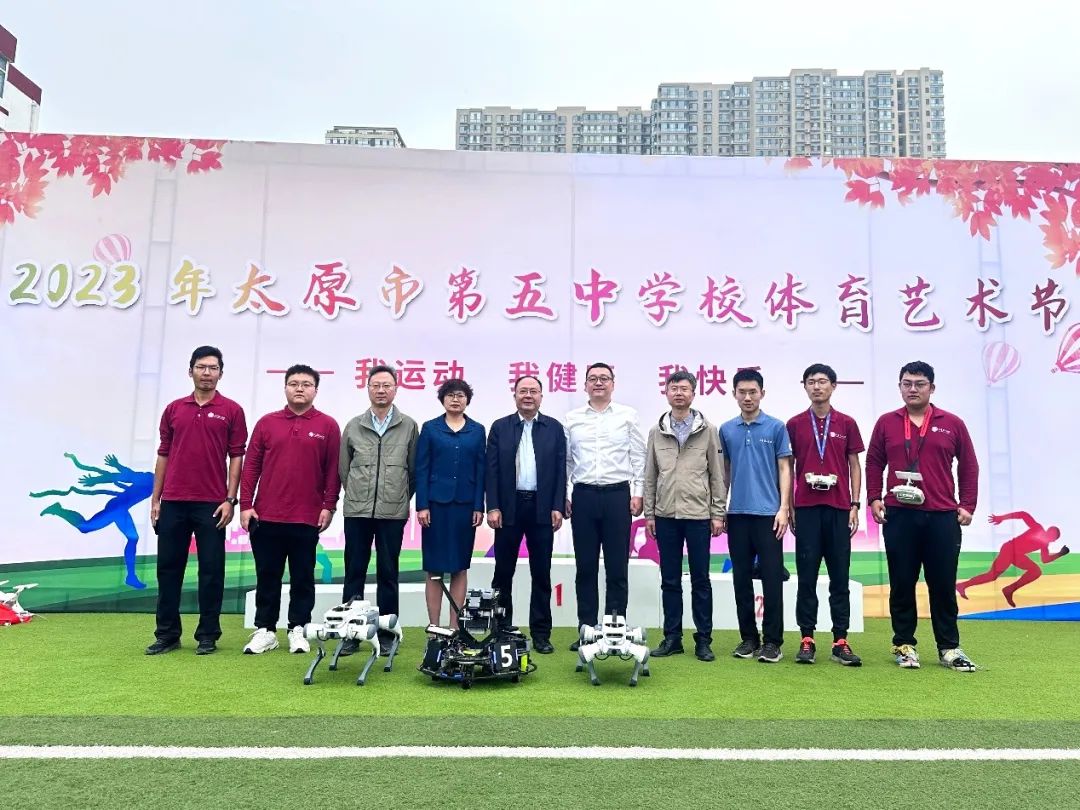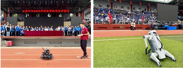 9月27日早7点30分,太原五中2023年秋季运动会正式开幕,4名大工机械本科生控制机器人、机器狗列队参与入场式检阅,并利用无人机展示了来自大工的祝福语,在全体太原五中学生中产生了强烈反响。