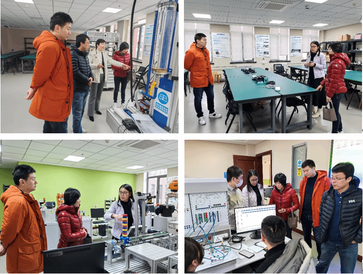 随后,赵梓程经理一行参观了控制工程基础、工业机器人实验室和PLC实验室的伺服控制模块、工业机器人与PLC控制等软硬件系统。