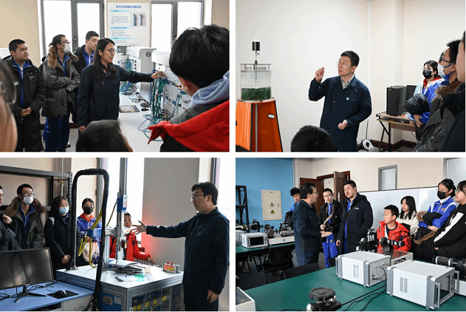为迎接同学们的到来,中心开放了工业机器人实验室、PLC实验室、流体力学实验室、液压传动实验室、大工-创非凡实验室和凸轮实验室等四个模块的实验室。韦磊、刘建伟、尉国滨、包海涛四位老师分别为大家介绍和演示了实验室内的实验设备和工作原理以及与其他学科的联系。