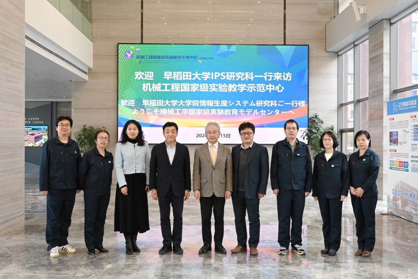 2024年3月15日,日本早稻田大学IPS研究科科長藤村茂、事務長向虎一行参观访问机械工程国家级实验教学示范中心(大连理工大学)。大连理工大学国际合作与交流处徐依馨、机械工程学院院长助理孙吉宁及中心全体教师陪同参观。