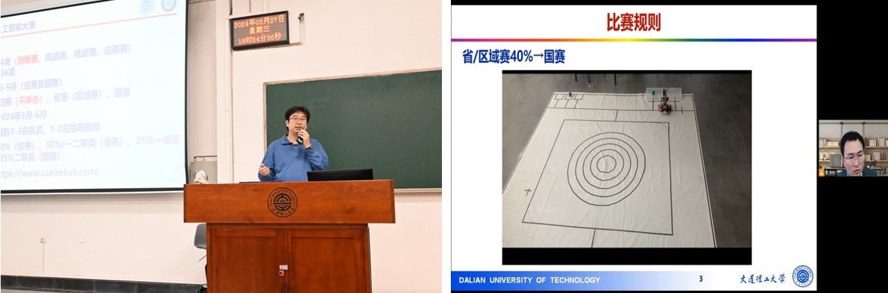 2024年3月27日,机械工程国家级实验教学示范中心(大连理工大学)(以下简称中心)在综合教学二号楼B101隆重举办了2024年科创竞赛宣讲会。此次宣讲会旨在鼓励大工学子积极参与竞赛,通过实践锻炼自身能力,培养创新创业精神,为我校的创新人才教育注入新的活力。