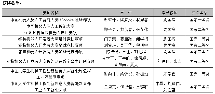 此外,闫子荣、要启融、闻学祺,刘睿轩、吴玉华、程明宇,以及陈浩强、王懂、刘远程三组同学,在睿抗机器人开发者大赛的足球竞技赛项中同样表现出色,均获国家二等奖。金大正、王宇航、徐辰翊、尚迦南、夏天获得睿抗机器人开发者大赛智能制造数字孪生研创赛项国家三等奖。