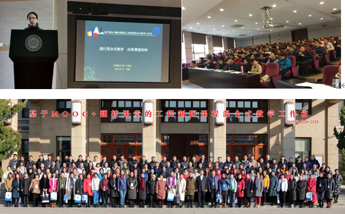 由教师发展中心与教育部工程图学课程教学指导分委员会、辽宁省图学学会等联合举办的 “基于慕课+翻转课堂的工程制图混合式教学”工作坊于2月20-23日在我校主楼第二报告厅、综合二号教学楼成功举办。来自浙江大学、北京理工大学、吉林大学、天津大学、国防科技大学、华南理工大学、湖南大学、深圳大学、火箭军工程大学、北京石油化工学院、南昌航空大学、山西农业大学、内蒙古工业大学、河北科技大学、西安建筑科技大学等77所高校148名教师参加会议,含10位教育部工程图学教学指导分委员会委员。机械学院教学院长杨睿教授、教育部工程图学课程教学指导分委员会秘书长浙江大学教授费少梅致辞,我校部分教师参加工作坊培训。本次工作坊是继2018年3期教学工作坊之后举办的第4期工程制图教学工作坊,由辽宁省教学名师、机械工程学院王丹虹教授主持。